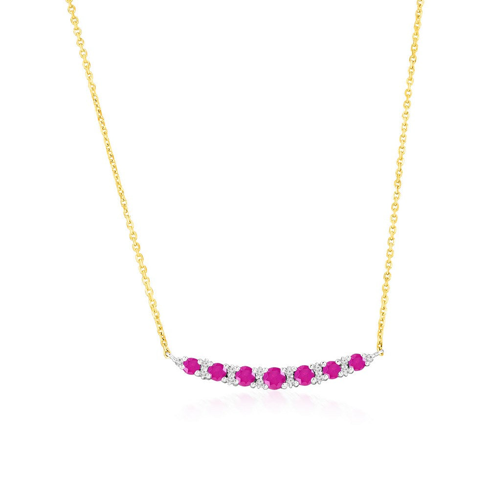 14K Yellow Gold, Round 0.36ct Ruby, Graduating Diamond Necklace - (28 Stones)