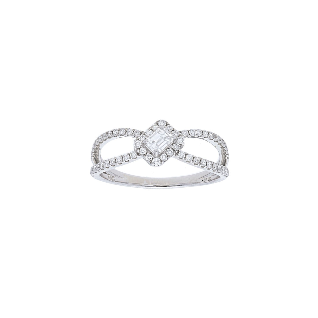 Elegant 2 Row Pave Diamond Ring with Emerald cut Center