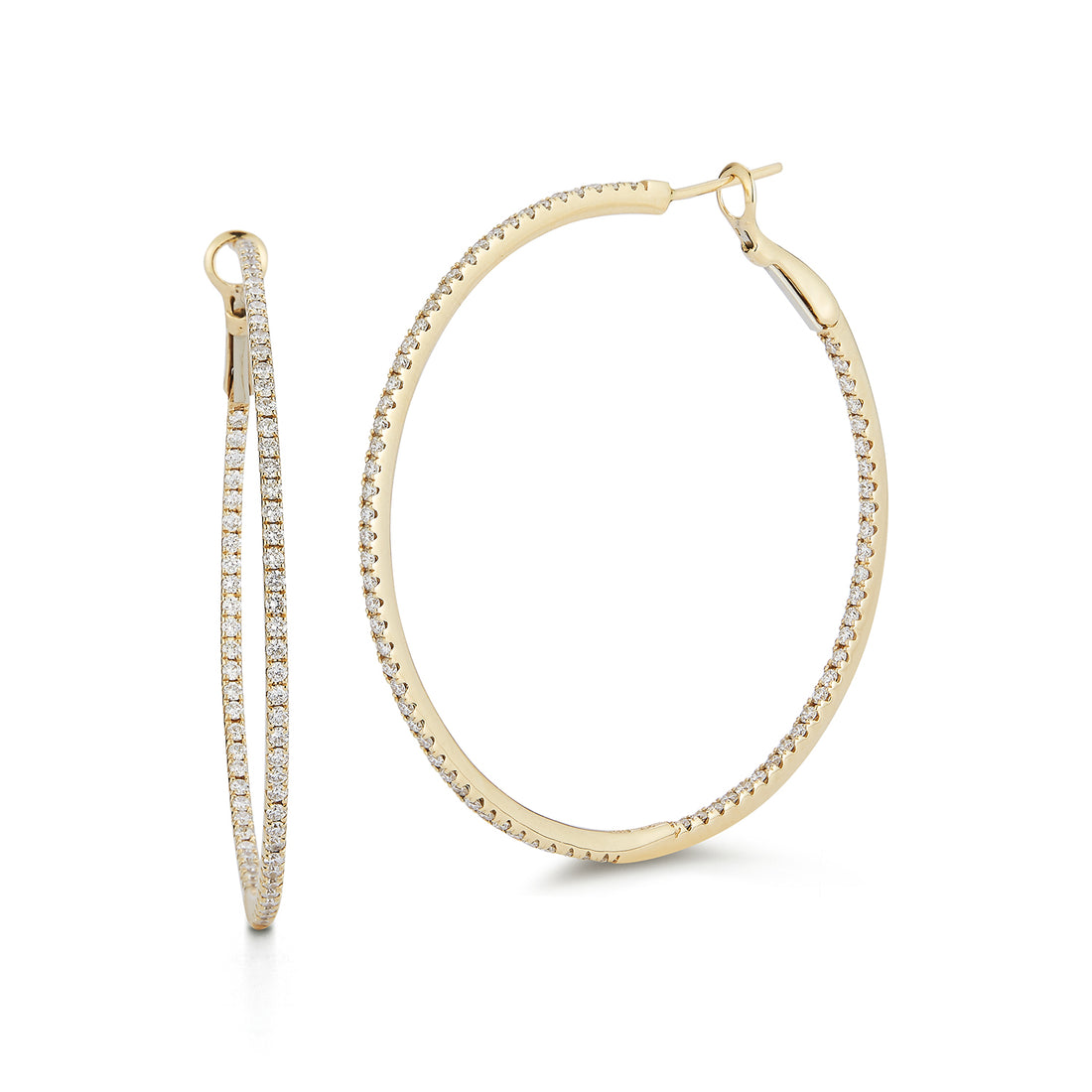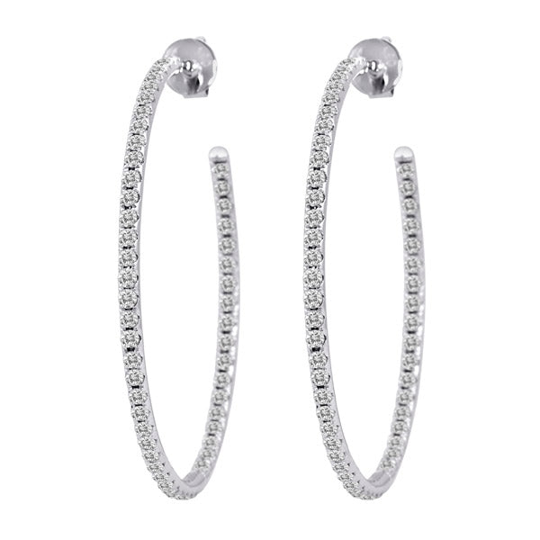 Inside and Outside Diamond Hoop Earrings, 2.00 inches