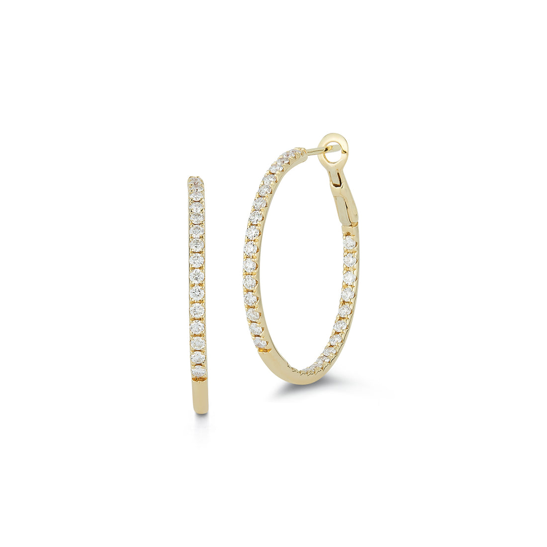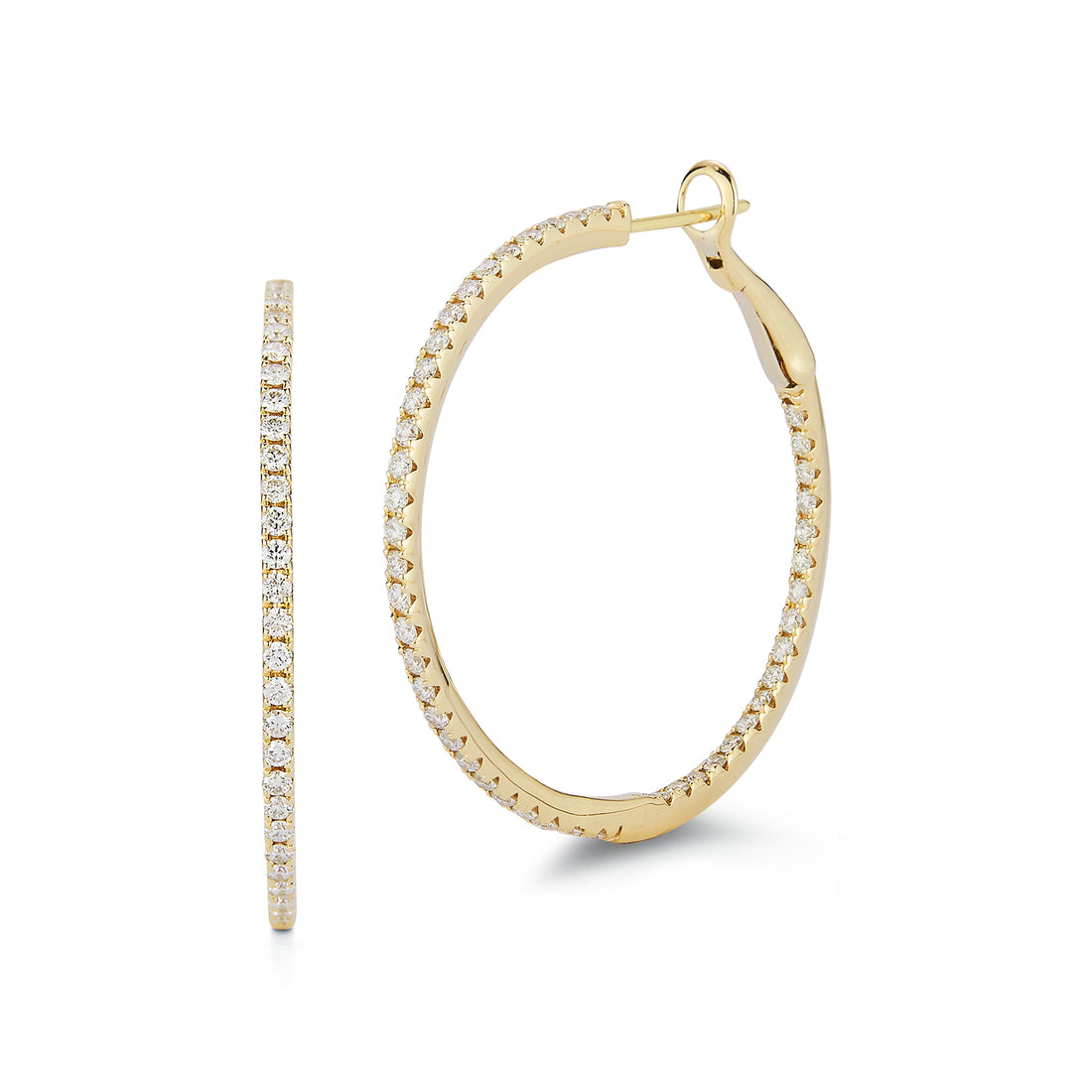 Inside and Outside Diamond Hoop Earrings, 1.50 inches