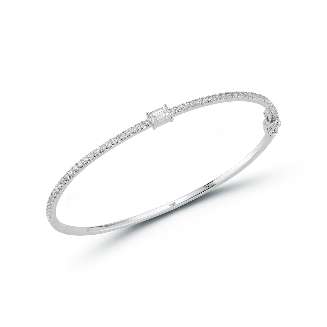 Halfway Around Pave Bangle With Emerald Diamond Accent