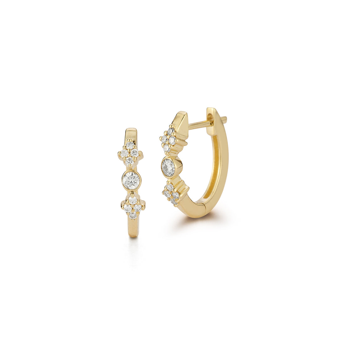 Cluster and Bezel Set Diamond Huggie Earrings