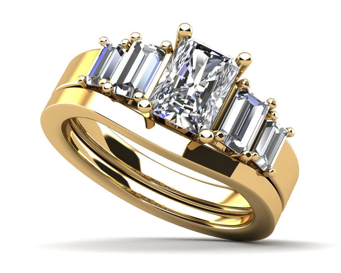 5 Stone Baguette Cut Lab-Grown Diamond Bridal Set with 2.73 ct. (1.50 ct. center diamond)