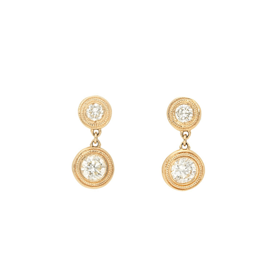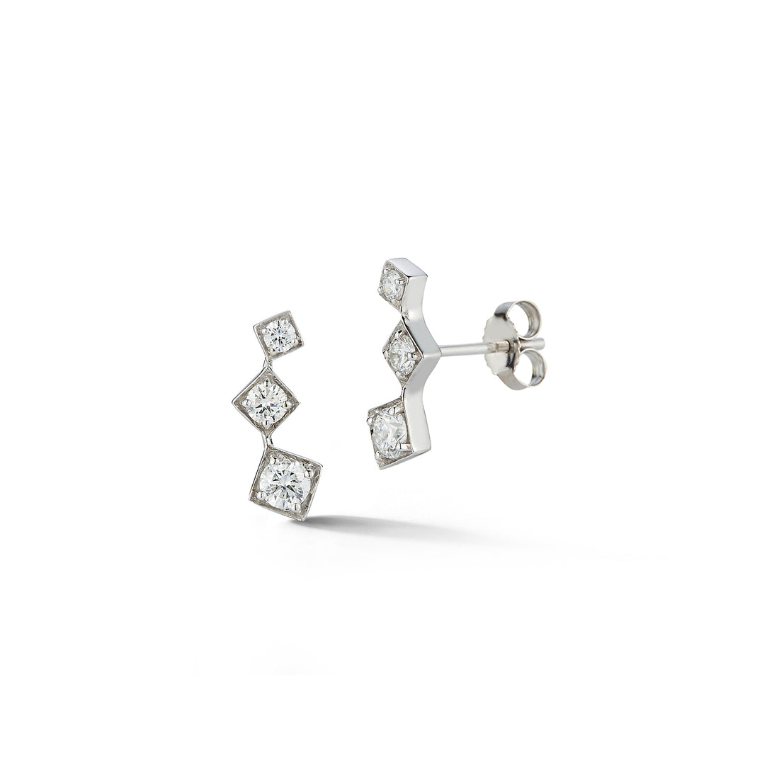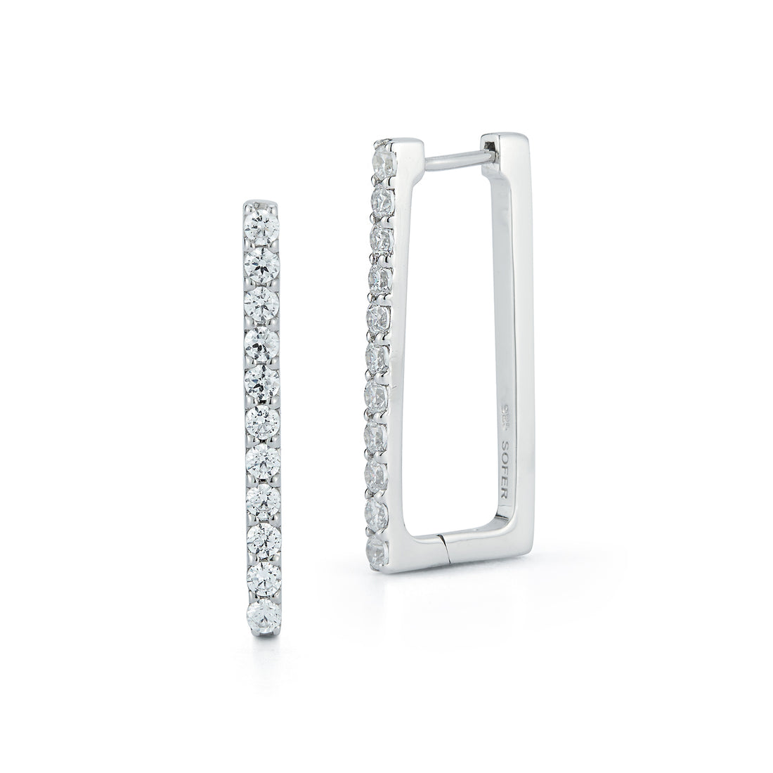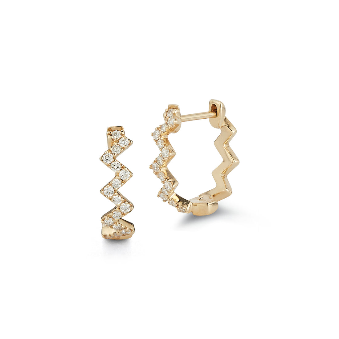 Gold Link Stud Hoop Earrings with Pave Diamond Bar Connection