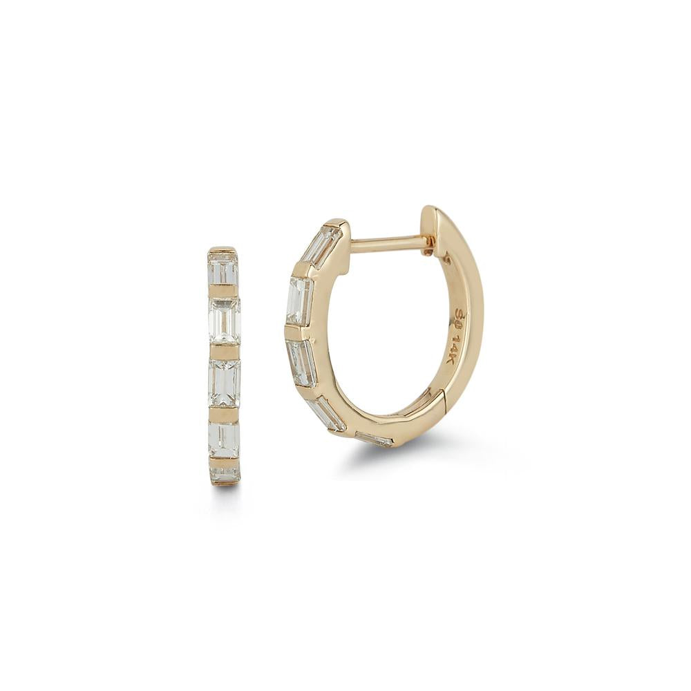 Baguette Cut Huggie Diamond Hoop Earrings with 0.42 ct.(finished) 2.5x1.5mm