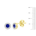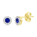 14K Yellow Gold, 3mm Round Sapphire (0.32ct) & Diamond Studs - (22 Stones)