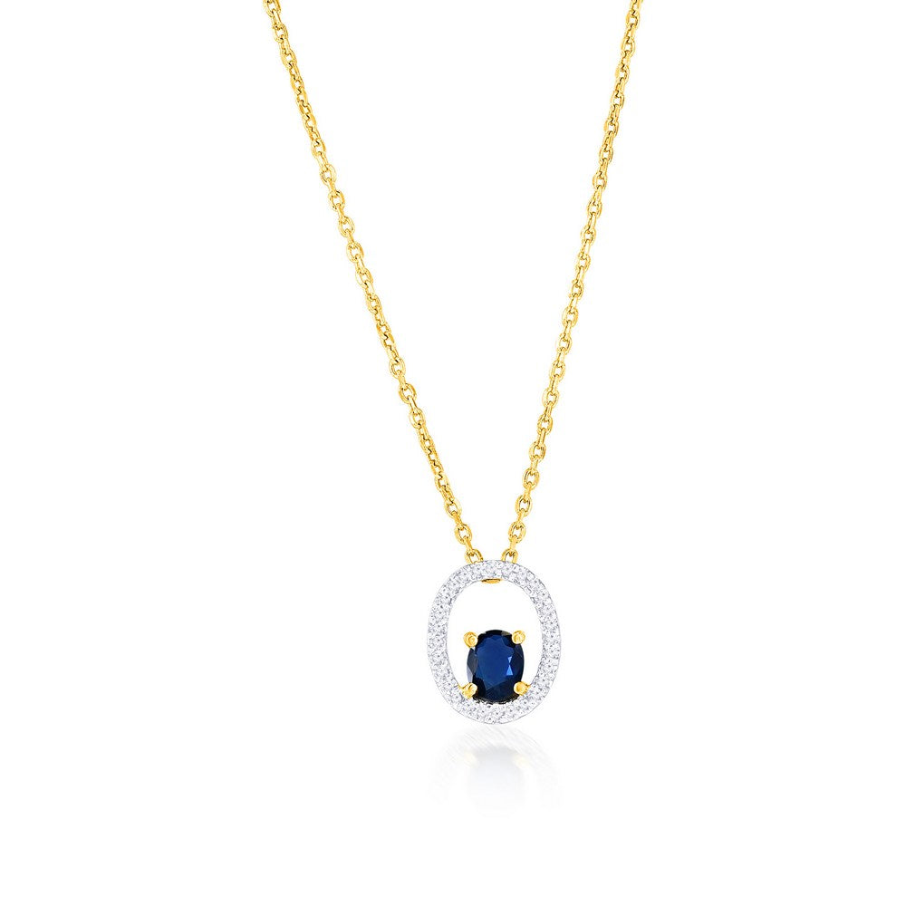 14K Yellow Gold, Oval 0.36ct Sapphire, Diamond Pendant - (28 Stones)