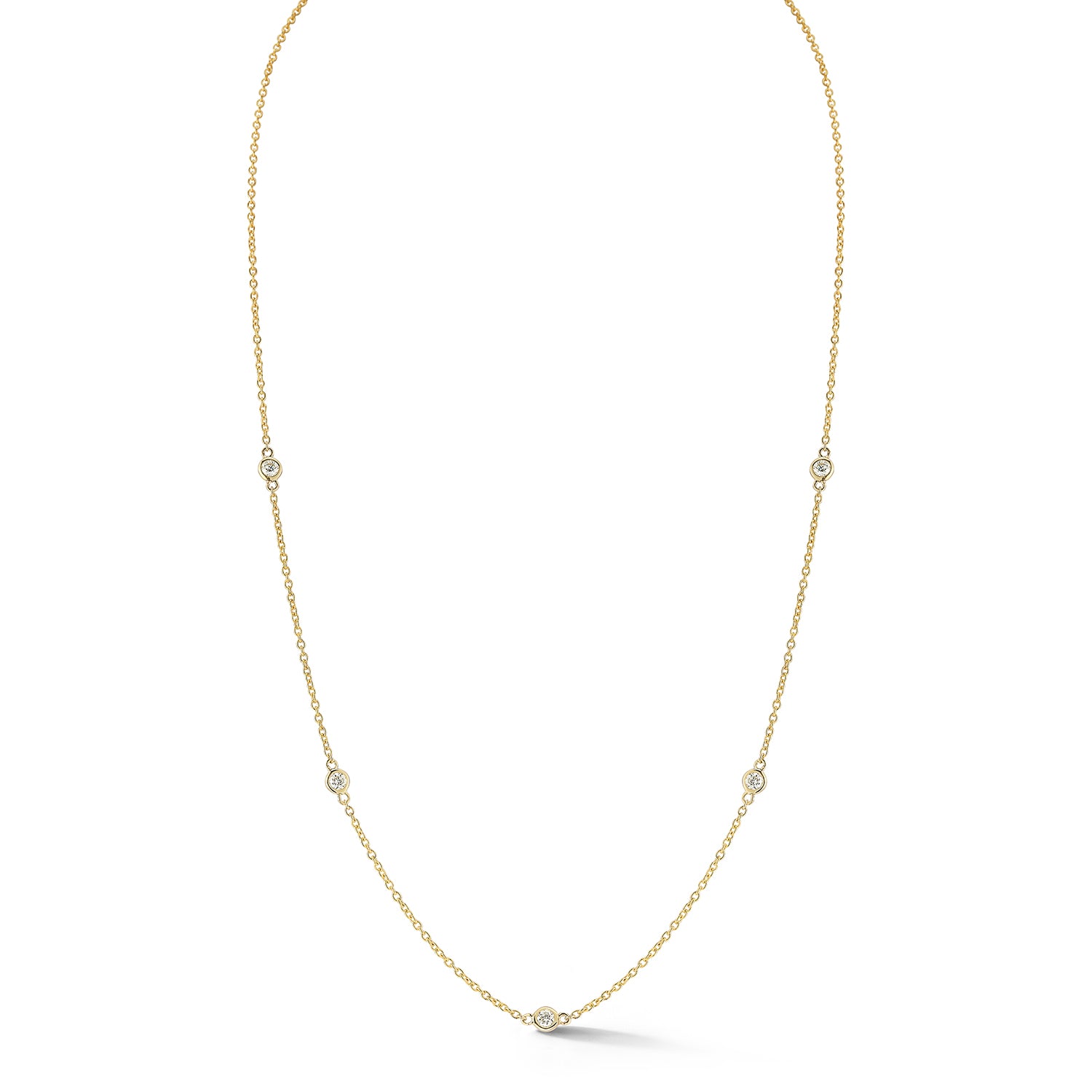 5 Station Plain Bezel Diamond By the Yard Necklaces