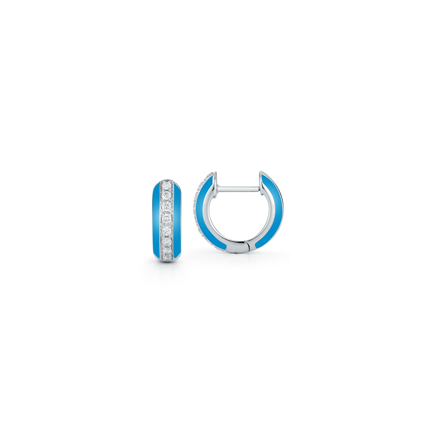 Blue Enamel and 1/2 Way Around Diamond Huggie Earrings