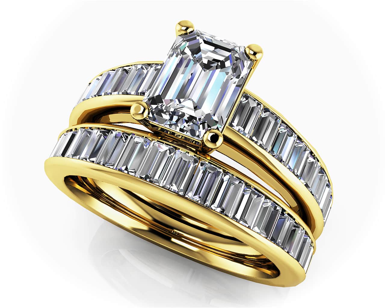 Brilliant Fire Emerald Cut Lab-Grown Diamond Bridal Set with 3.31 ct. (1.50 ct. center diamond)