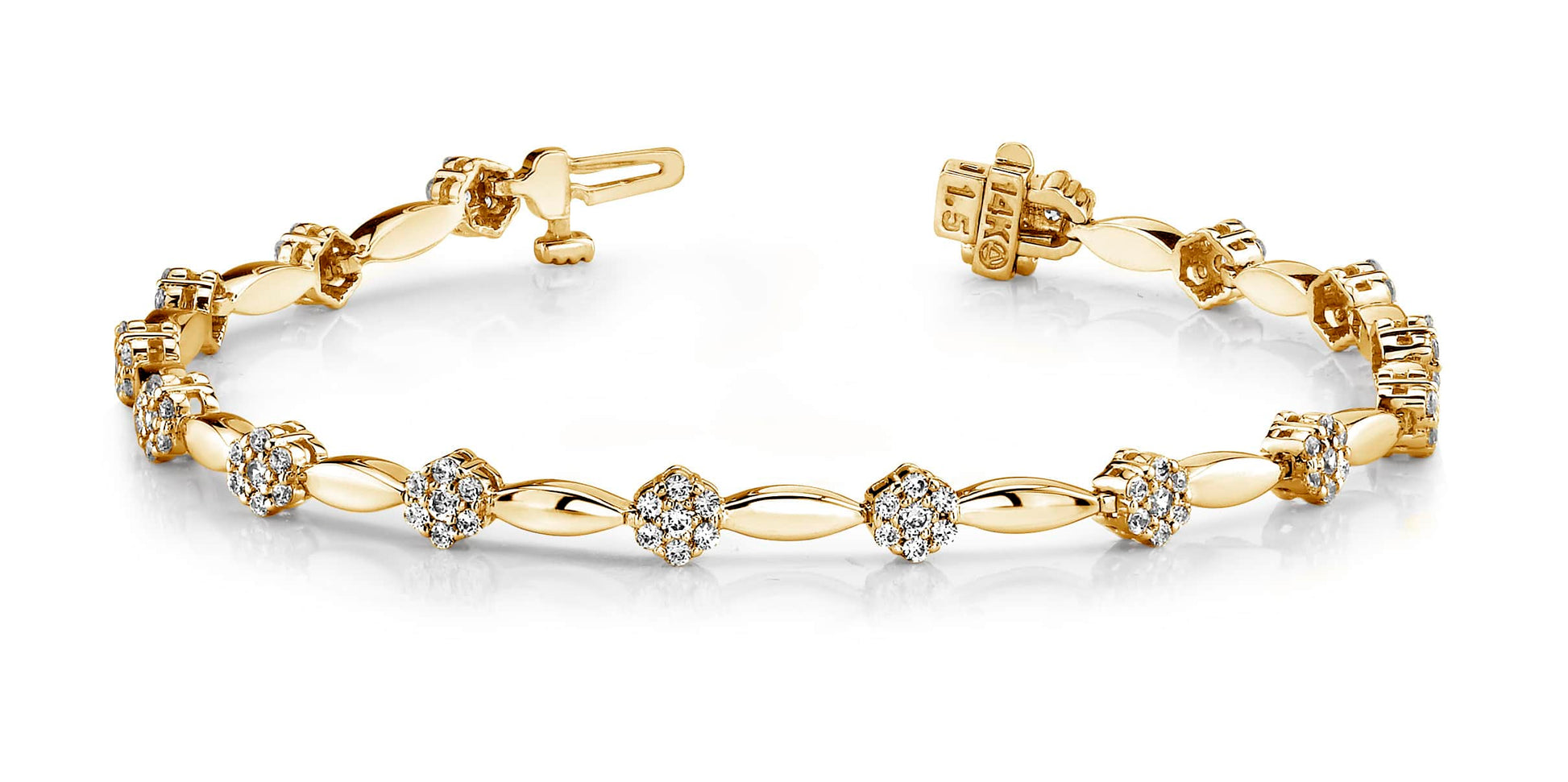 Diamond Cluster Link Bracelet In Lab-Grown Diamond with 1.50 ct.(finished) 1.3mm, 1.7mm