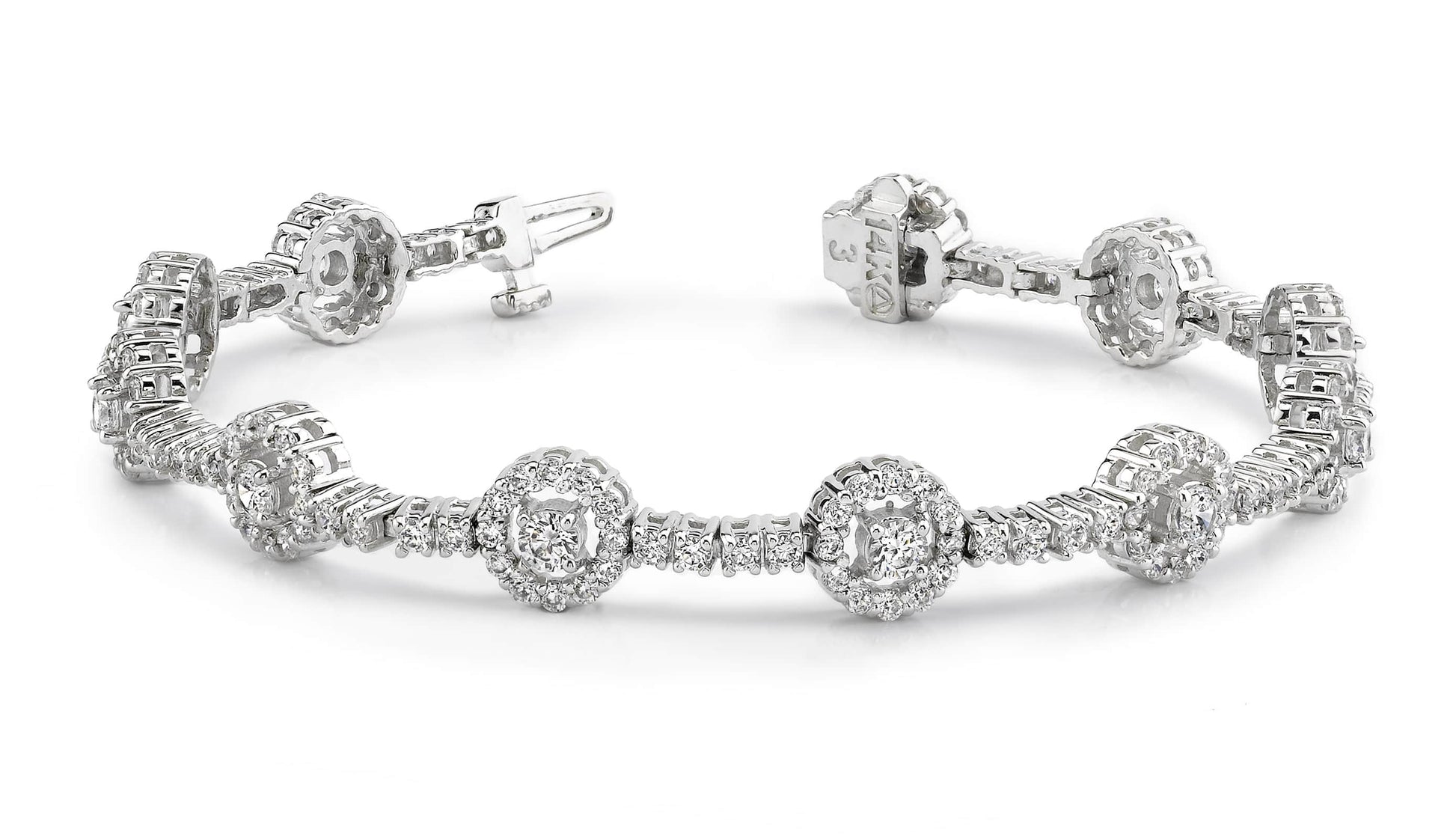 Diamond Halo Link Bracelet Lab-Grown Diamond with 4.02 ct.(finished) 1.4mm, 1.7mm, 3mm