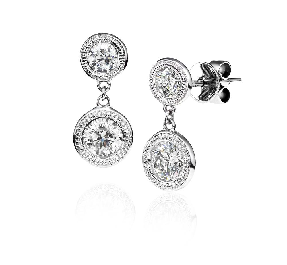 Diamond Milgrain Bezel Drop Earrings