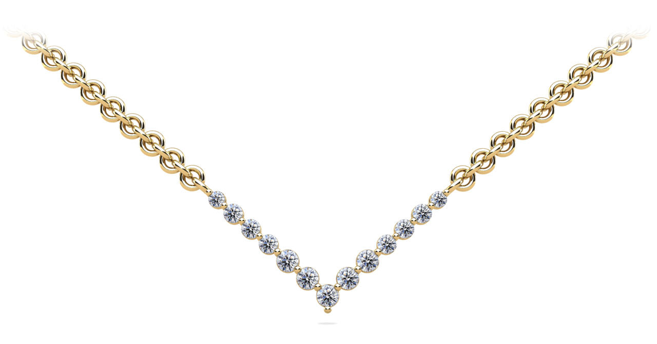 Graduated V Neck Diamond Diamond Necklace with 2.42 ct.(finished) 3mm, 3.5mm, 4mm
