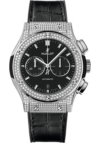 Hublot Classic Fusion Chronograph Titanium PavŽ Watch - 42 mm - Black Dial - Black Rubber and Leather Strap - 541.NX.1171.LR.1704