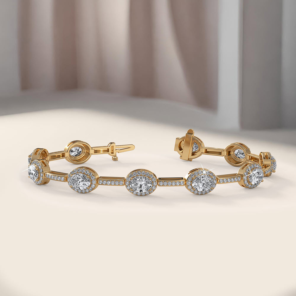 Oval Halo Lab-Grown Diamond Bracelet with 11.92 ct.(finished) 7x5mm, 1.2mm