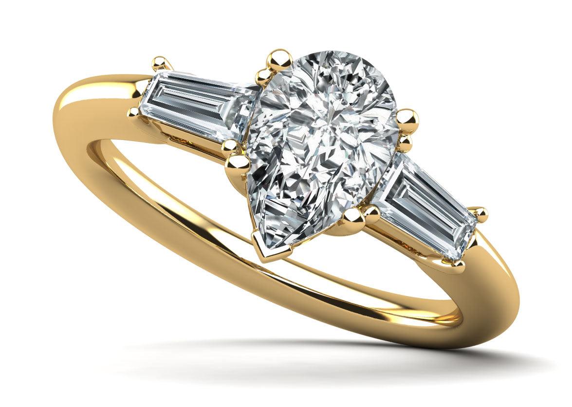 Pear and Baguette Three Stone Lab-Grown Diamond Engagement Ring with 2.56 ct. (2.00 ct. center diamond)