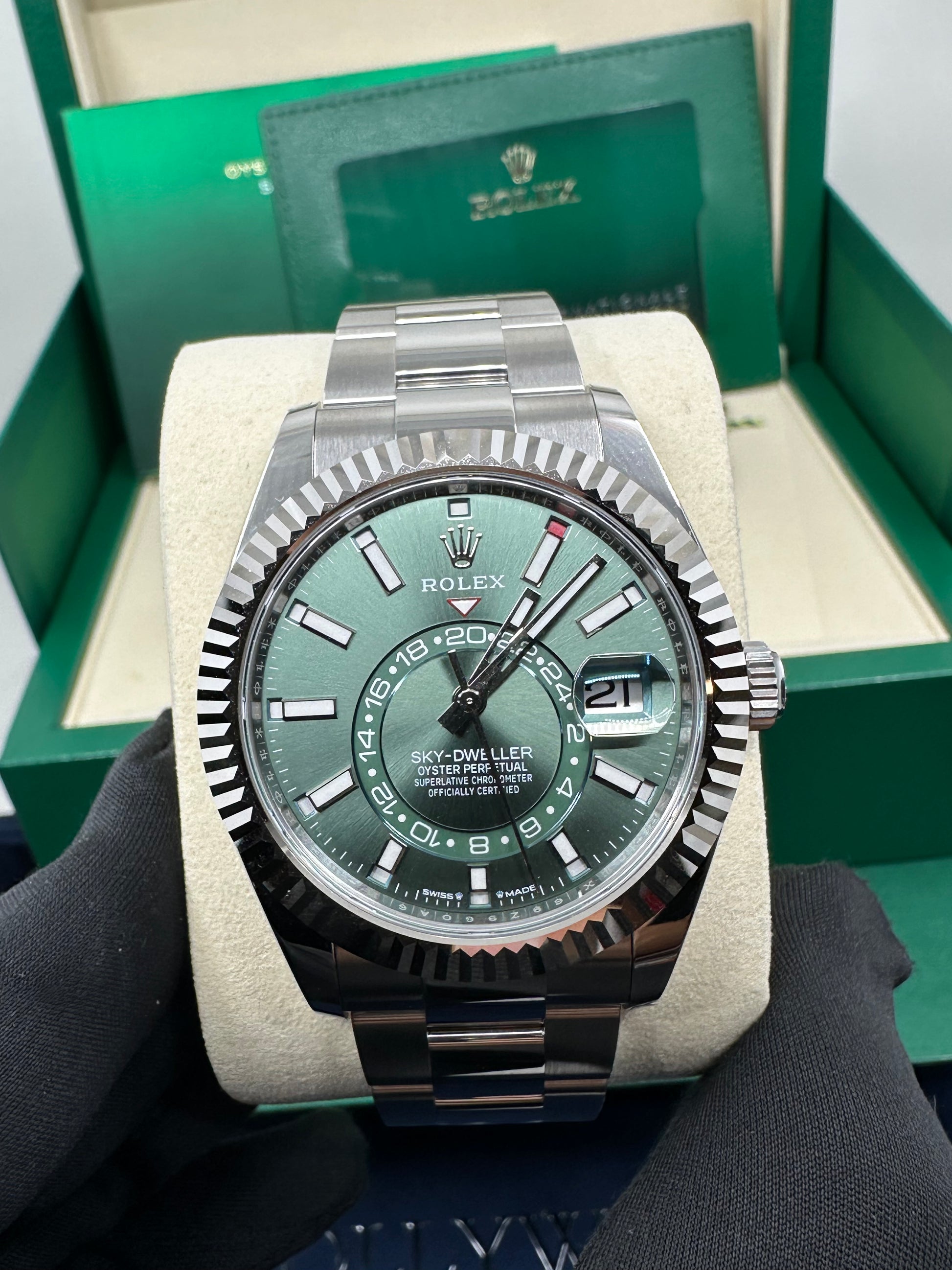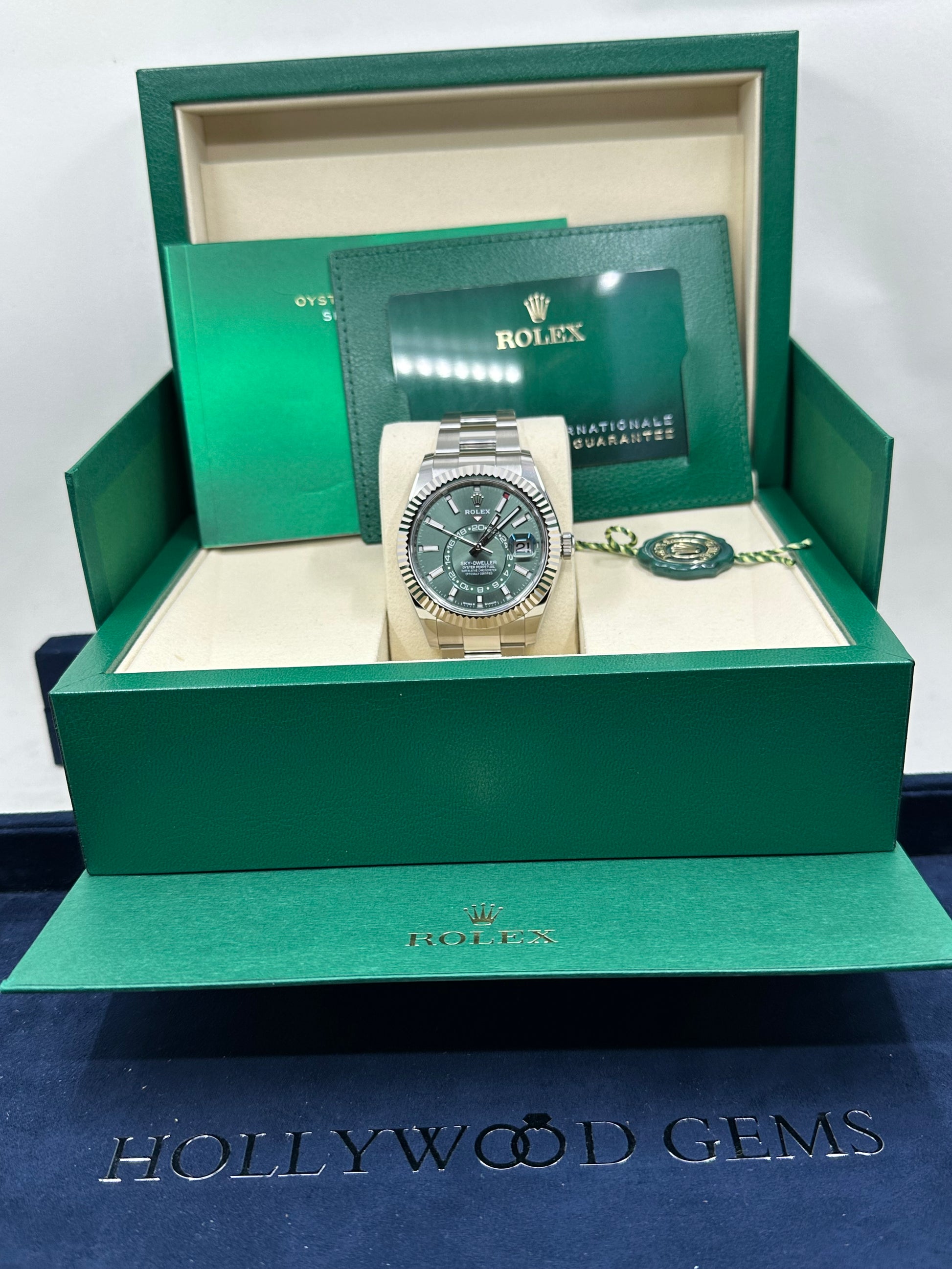 The Rolex Sky-Dweller 336934 with its distinctive Mint Green Dial embodies the fusion of precision engineering and refined aesthetics, showcasing Rolex's commitment to pushing the boundaries of luxury watchmaking.