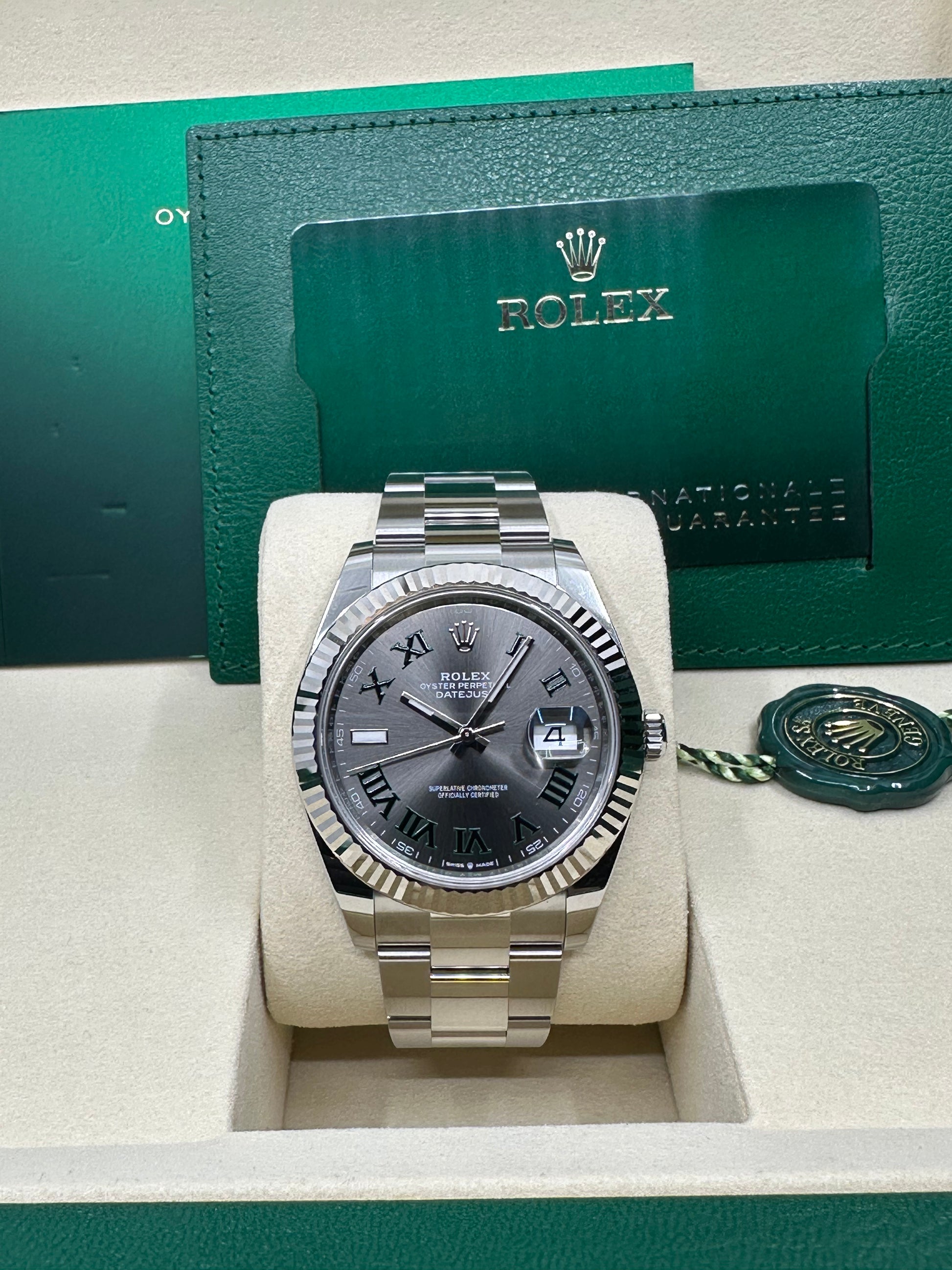 Rolex Datejust Wimbledon 41 Oyster Bracelet - Fluted Bezel - Slate Green Roman Dial - 126334 slgro