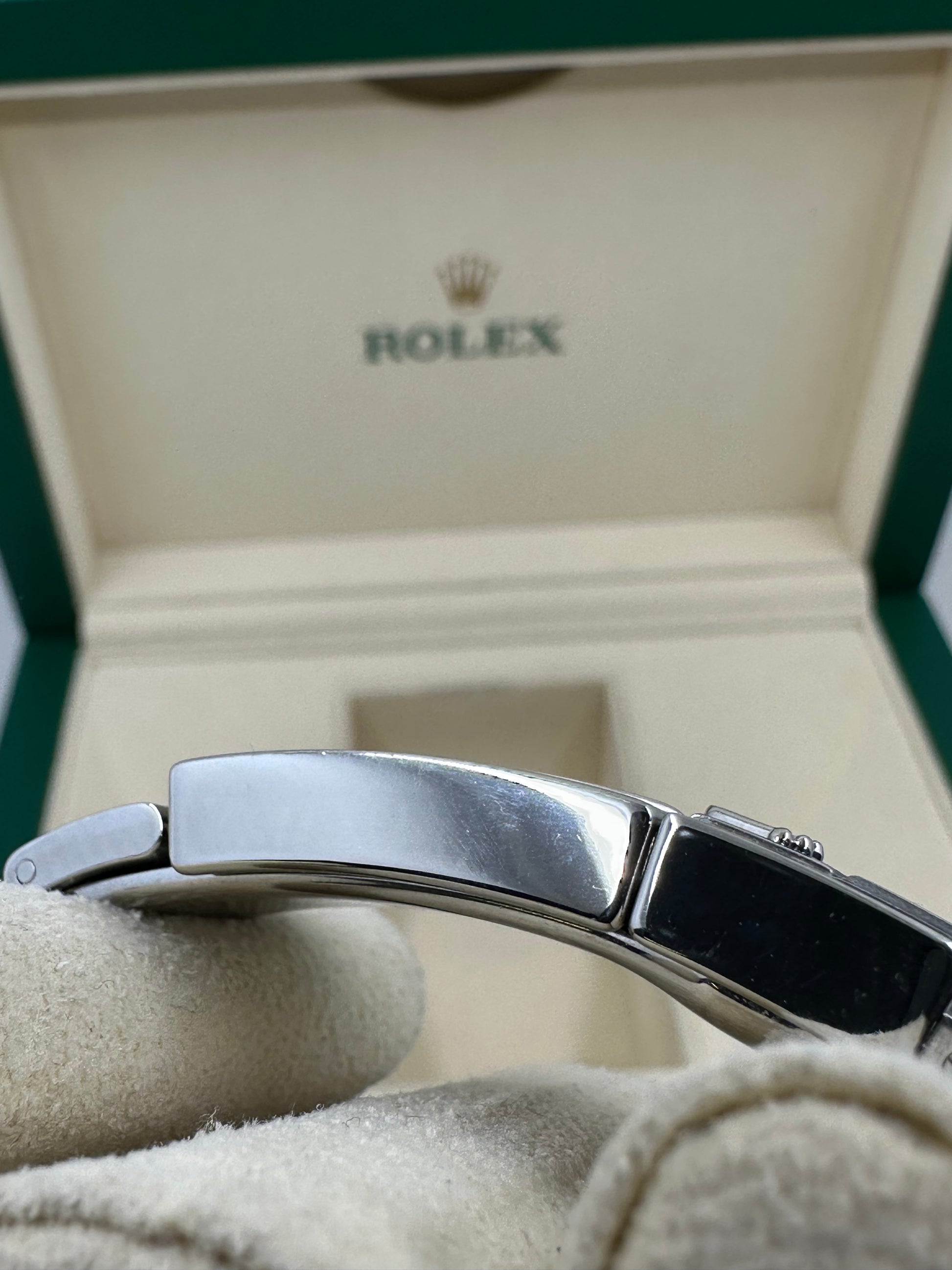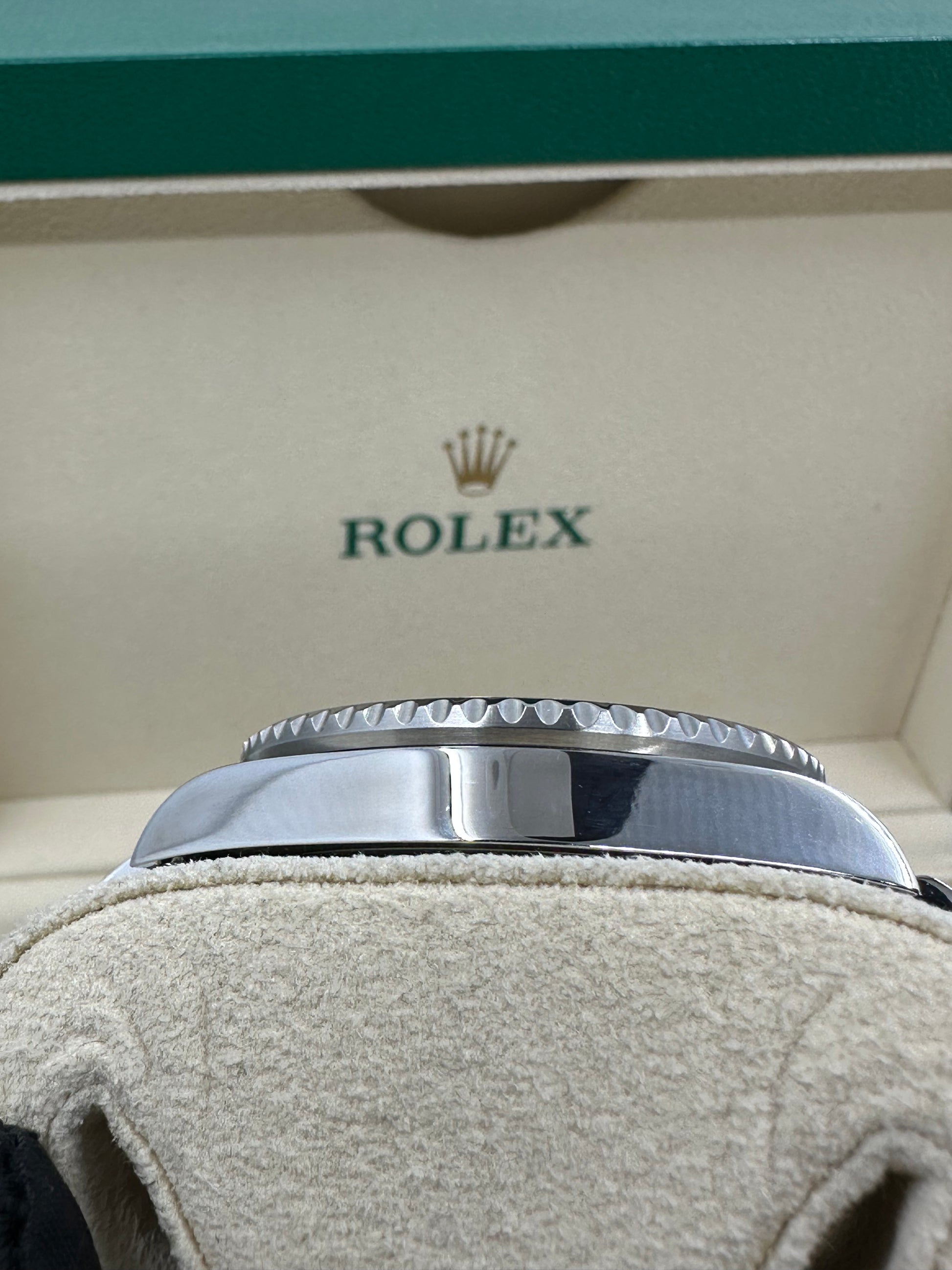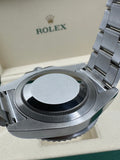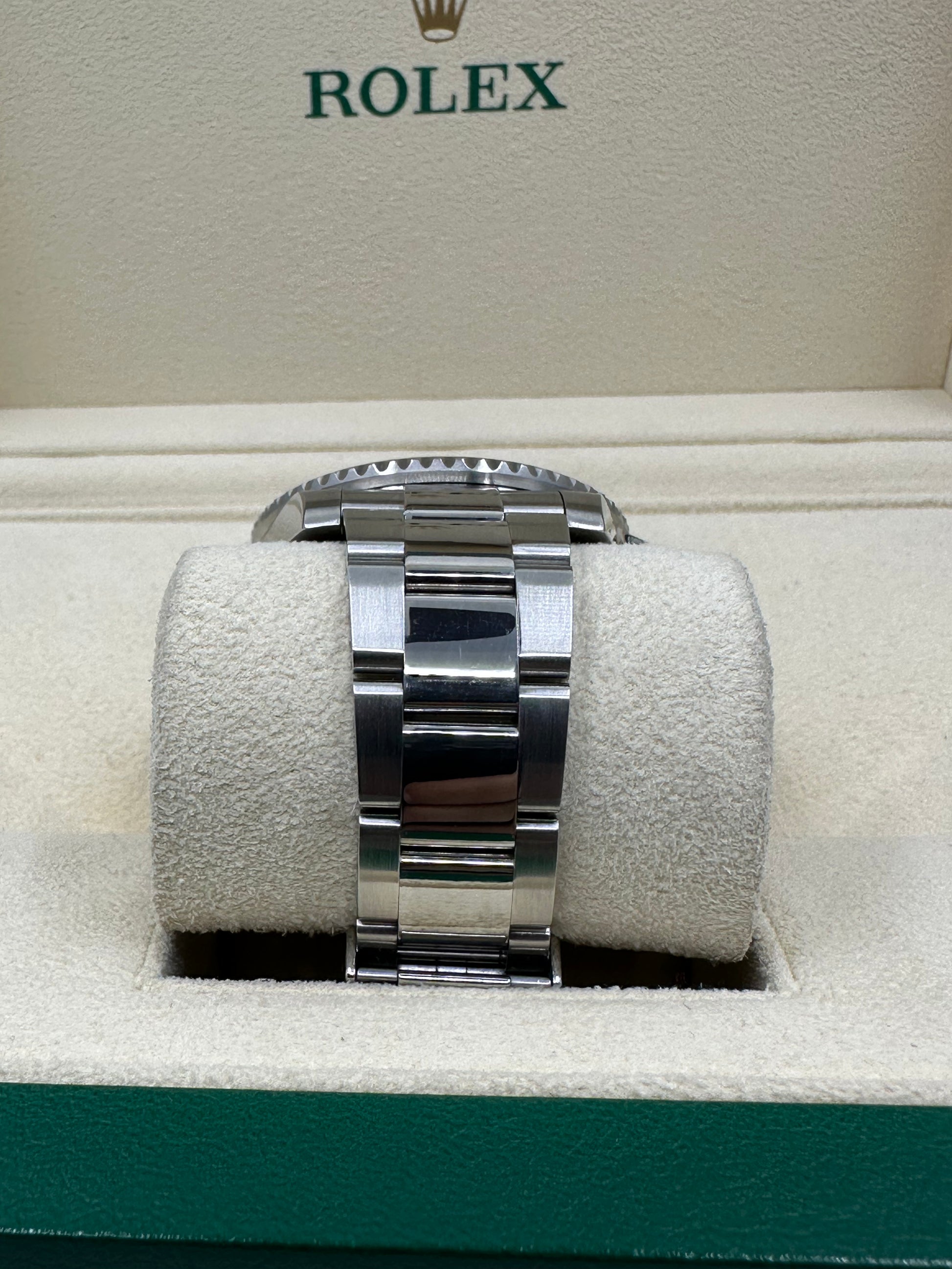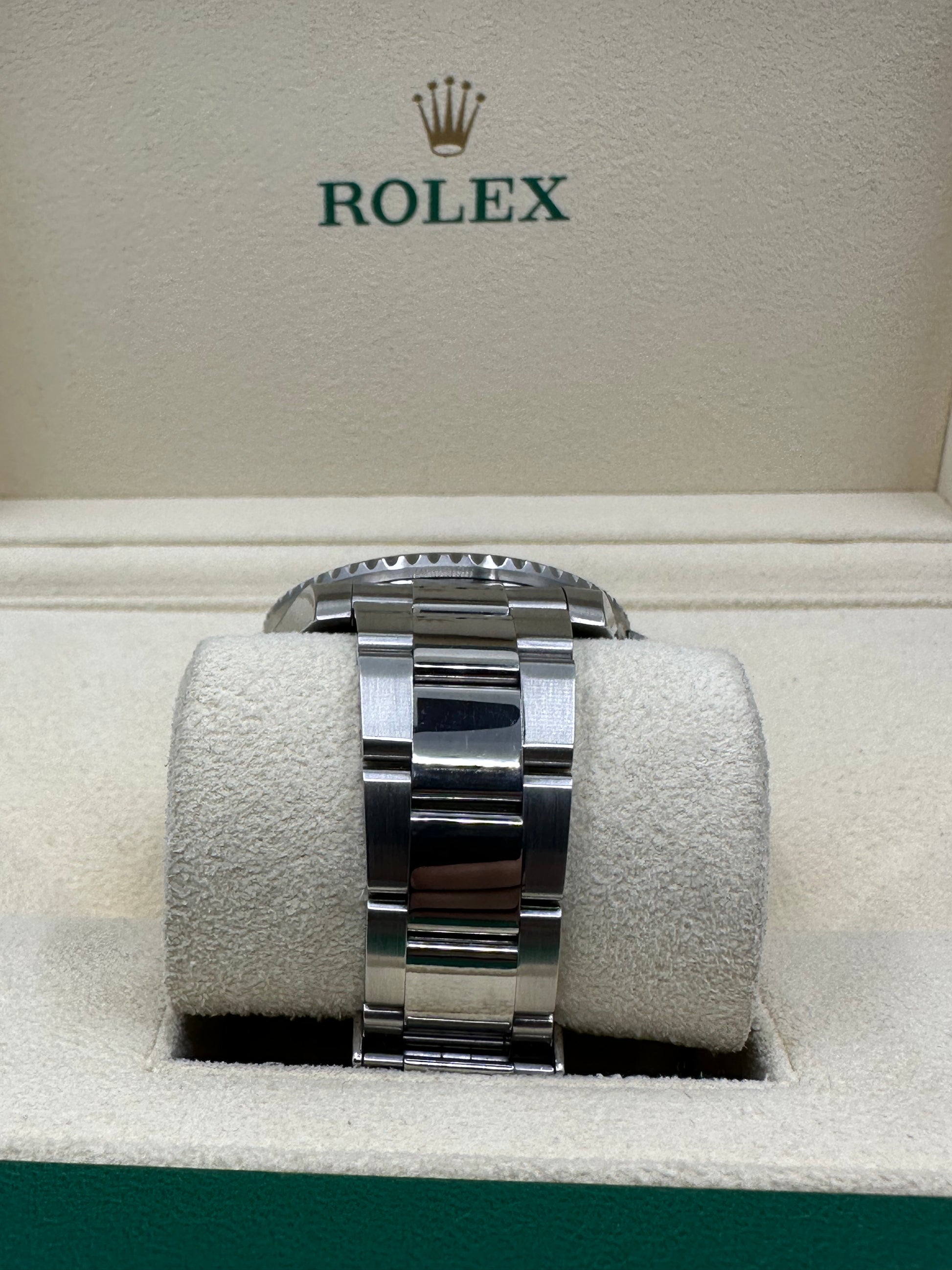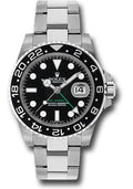 40mm stainless steel case, bidirectional rotatable bezel with 24-hour engraved black Cerachrom insert, green 24 hour second time zone hand, independent 12 hour hand, black dial, and stainless steel Oyster Fliplock bracelet with Easylink 5 mm comfort extension link. Water resistant to 100 meters.