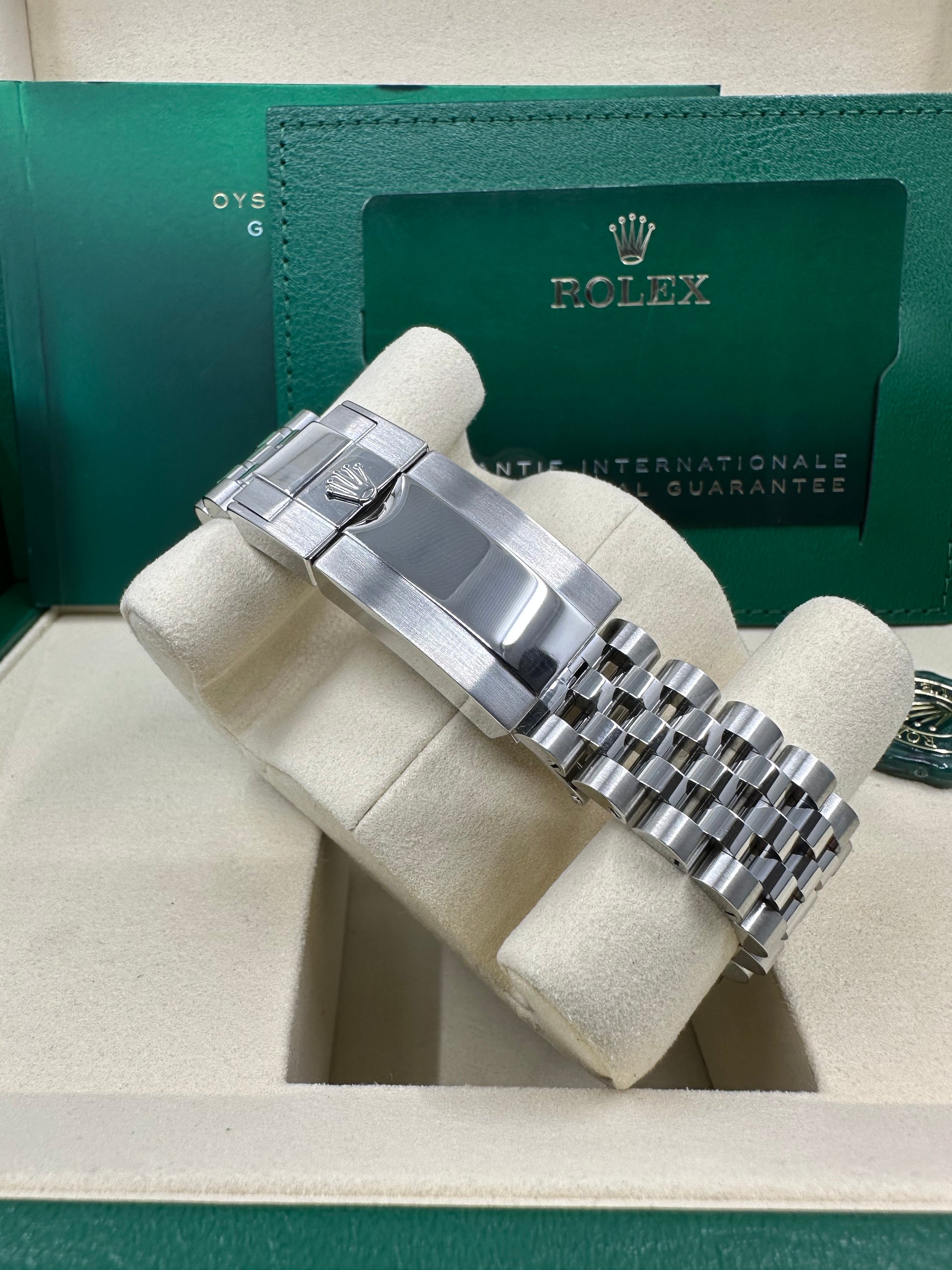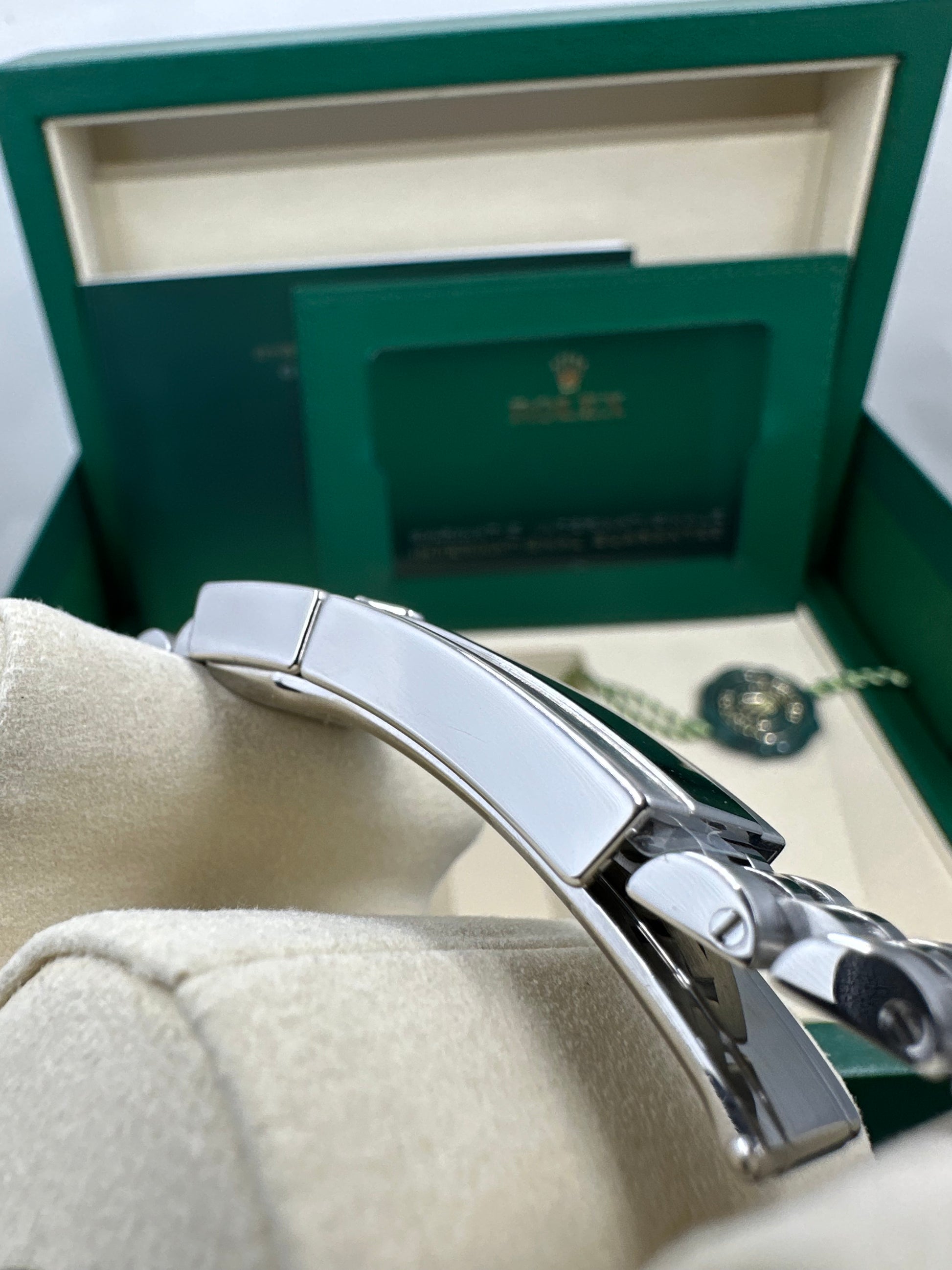 40mm stainless steel case with Oystersteel monobloc middle case, screw-down crown, bidirectional rotatable 24-hour graduated bezel with Pepsi red and blue Cerachrom insert and engraved numerals, scratch-resistant sapphire crystal with cyclops lens over the date, black dial, hour markers set with Chromalight, Rolex calibre 3285 self-winding movement with second time-zone hour hand and instantaneous date, approximately 70 hours of power reserve, stainless steel Jubilee bracelet with rounded five-piece links, folding Oysterlock buckle with Easylink 5mm comfort extension link. Waterproof to 100 meters.