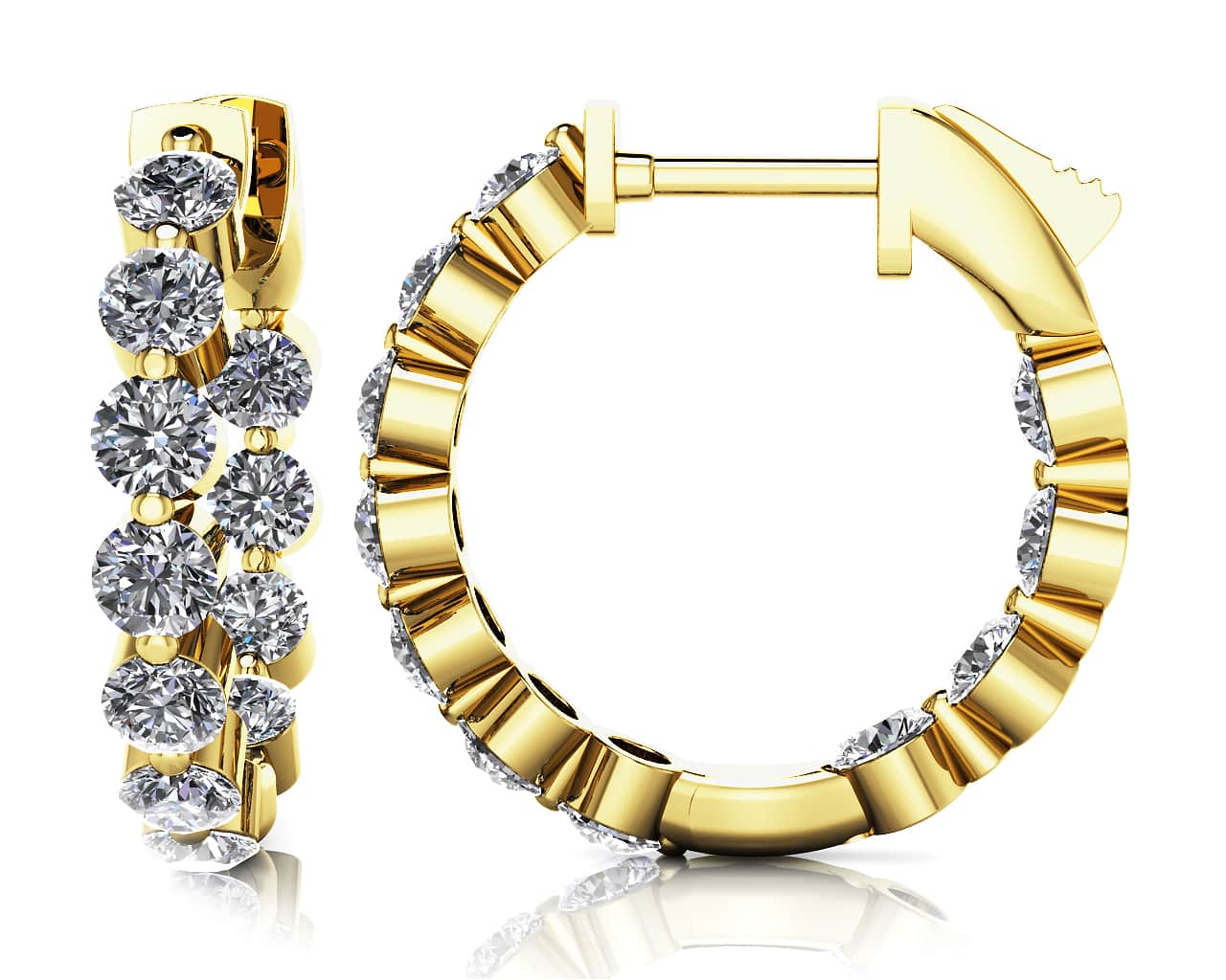 Shared Prong Diamond Hoop Earrings Extra Small Diamond with 0.86 ct.(finished) 2mm