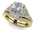 Single Halo Cushion Cut Diamond Bridal Set with 2.40 ct. (1.50 ct. center diamond)