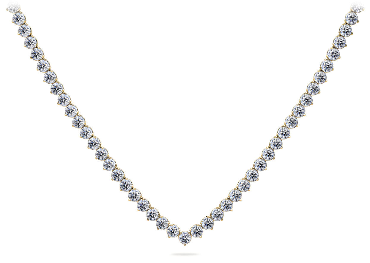 Timeless Three Prong Riviera V Neck Lab-Grown Diamond Necklace with 22.25 ct.(finished) 3.9mm