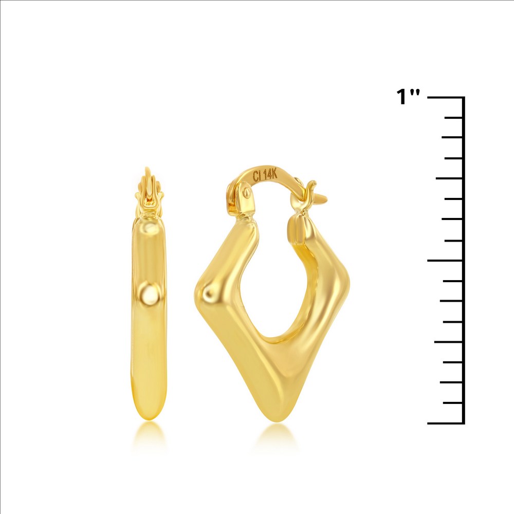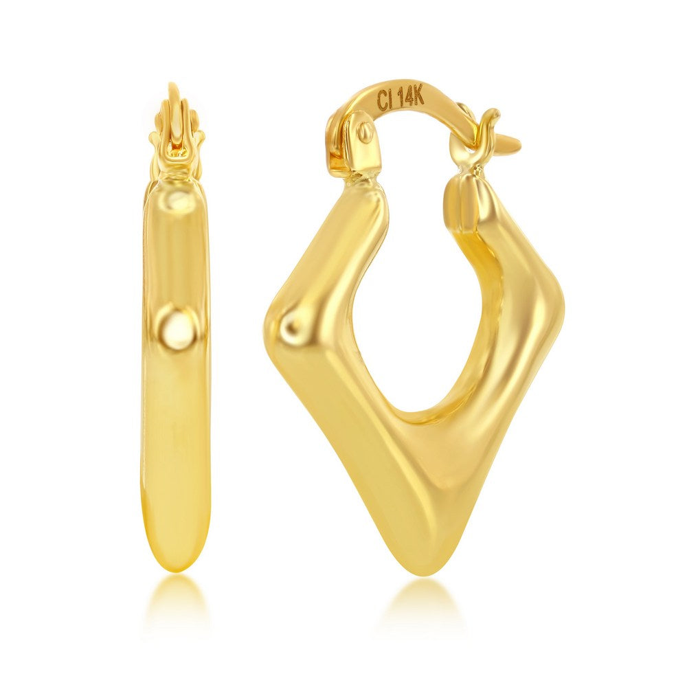 Yellow Gold Diamond-Shaped Hoop Earrings - 14K Gold